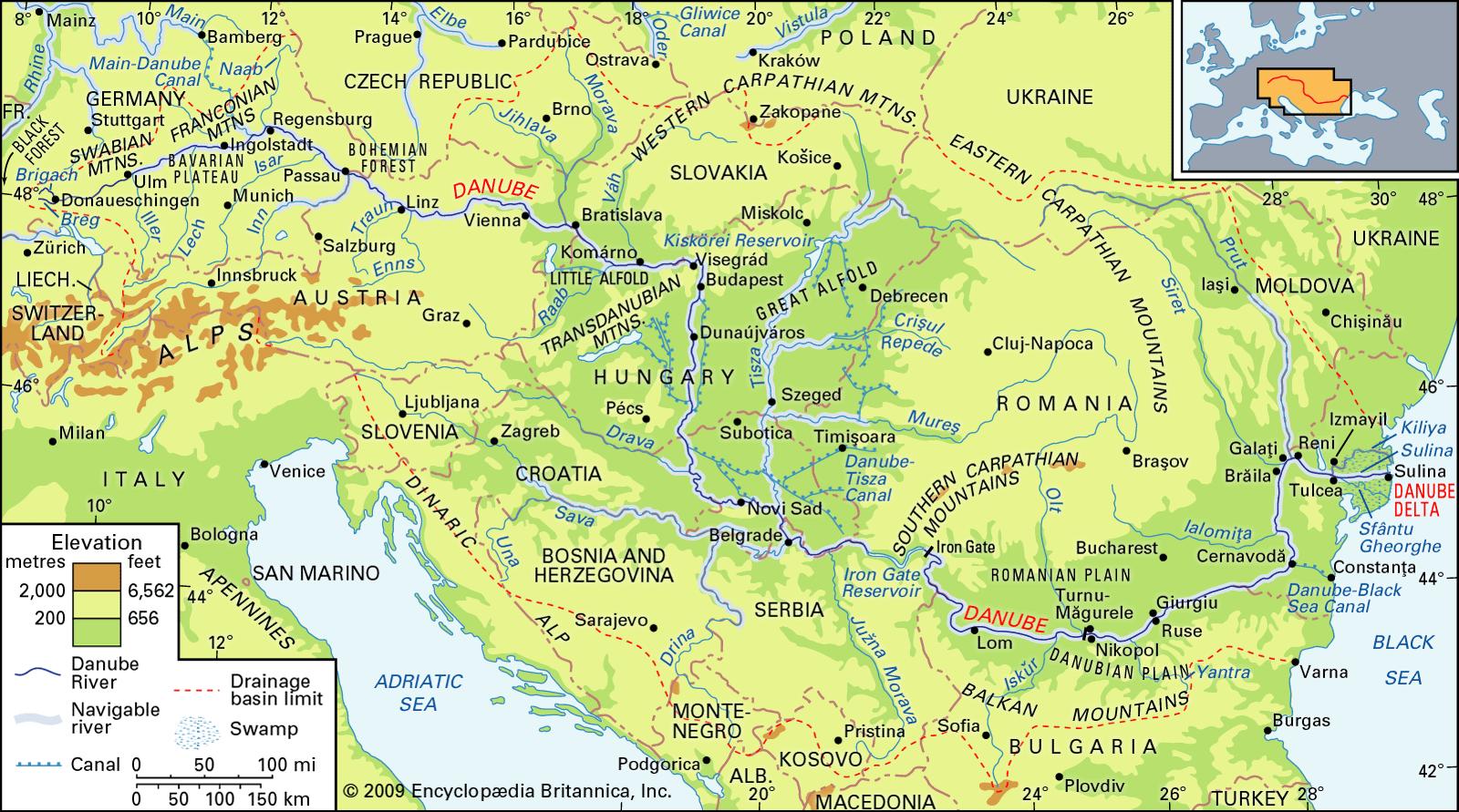 Danube River map (© Encyclopaedia Britannica, Inc.).